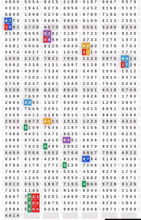 | Rumus Angka Mati berdasarkan kepala harian | 08 09 10 16 17 19 20 27 28 30 31 32 37 38 39 40 41 42 43 48 49 50 51 52 54 59 60 62 63 65 74 75 76 85 86 87 96 97 98 |