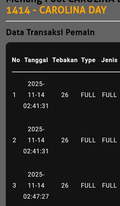 Selamat Bergabung kembali bersama angkanet dalam room Prediksi North Carolina Day. Untuk kenyamanan dalam berprediksi, kami melarang adanya posting nomor WA, Web atau FB. Angkanet juga tidak pernah menjual prediksi, software, atau aplikasi togel lainnya. Berprediksilah secara damai dan elegan. Terima kasih telah menjadi pengunjung setia angkanet