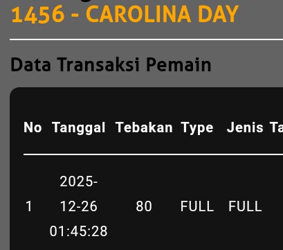 Prediksi North Carolina Day Sabtu, 27-12-2025