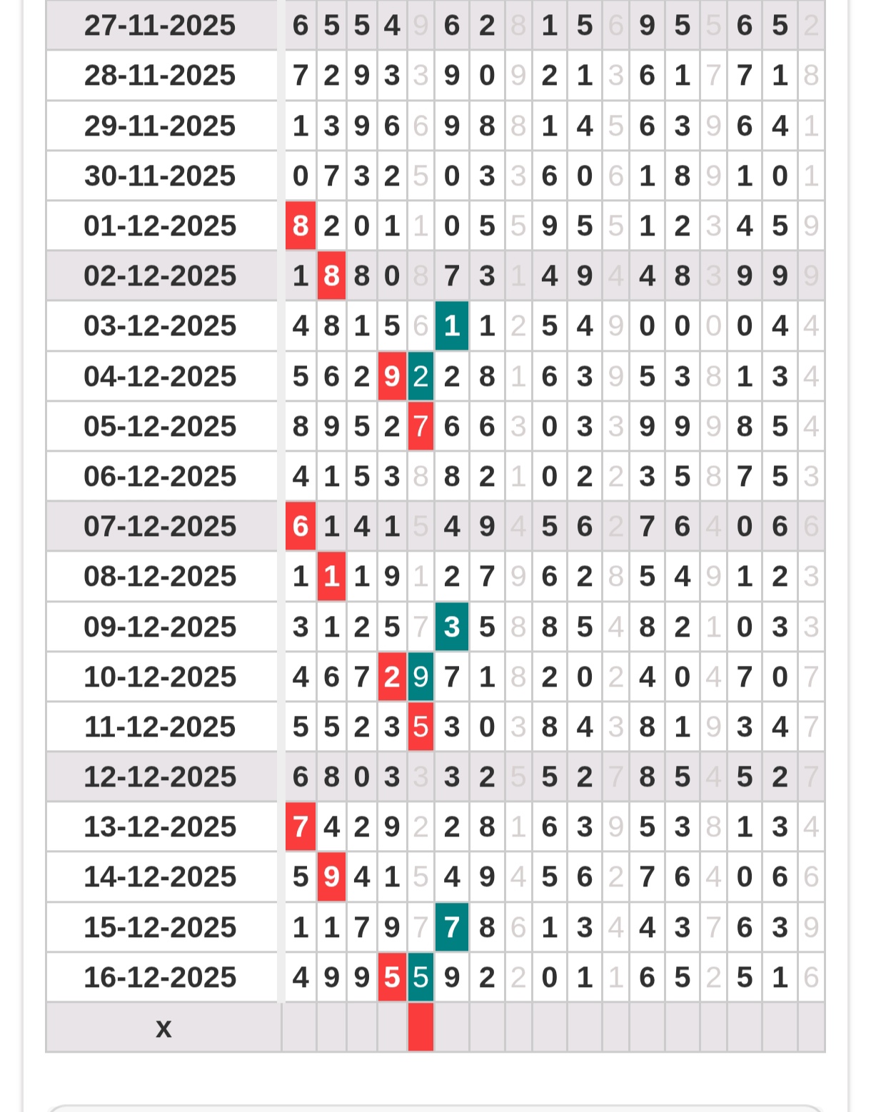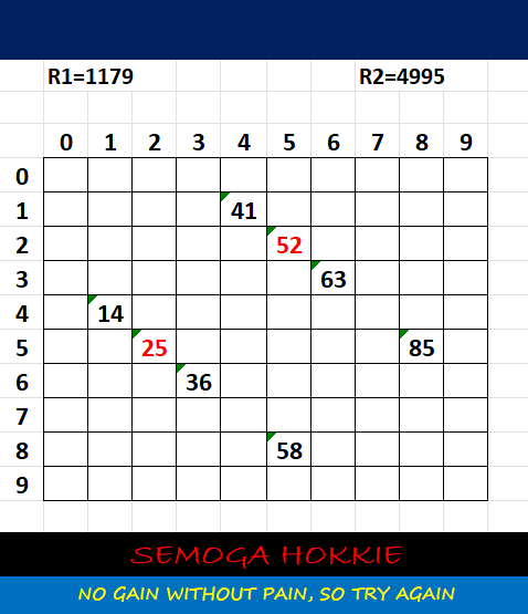 | Rumus Angka Mati berdasarkan kepala harian | 05 06 08 09 16 17 19 20 21 26 27 28 29 30 31 32 37 38 39 40 41 43 48 49 51 52 54 59 63 64 65 74 75 76 85 86 87 97 98 |