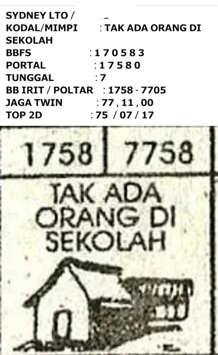 Prediksi Sydney Lotto Minggu, 09-11-2025 Merupakan Prediksi Otomatis yang menggabungkan Metode Kalender Togel Dengan LN Generator yang akurasi prediksinya sudah kita ketahui bersama. Jadi harap Maklum Jika kadang meleset Prediksi Sydney Lotto kita. Jadikan ini sebagai perbandingan saja dan tetap Utamakan karya sendiri
