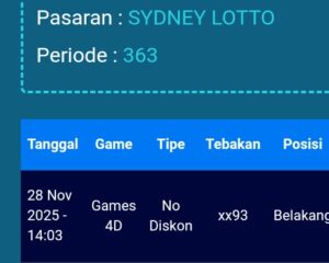 Prediksi Sydney Lotto Minggu, 30-11-2025 | |
