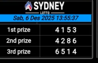 Prediksi Sydney Lotto Senin, 08-12-2025 Merupakan Prediksi Otomatis yang menggabungkan Metode Kalender Togel Dengan LN Generator yang akurasi prediksinya sudah kita ketahui bersama. Jadi harap Maklum Jika kadang meleset Prediksi Sydney Lotto kita. Jadikan ini sebagai perbandingan saja dan tetap Utamakan karya sendiri