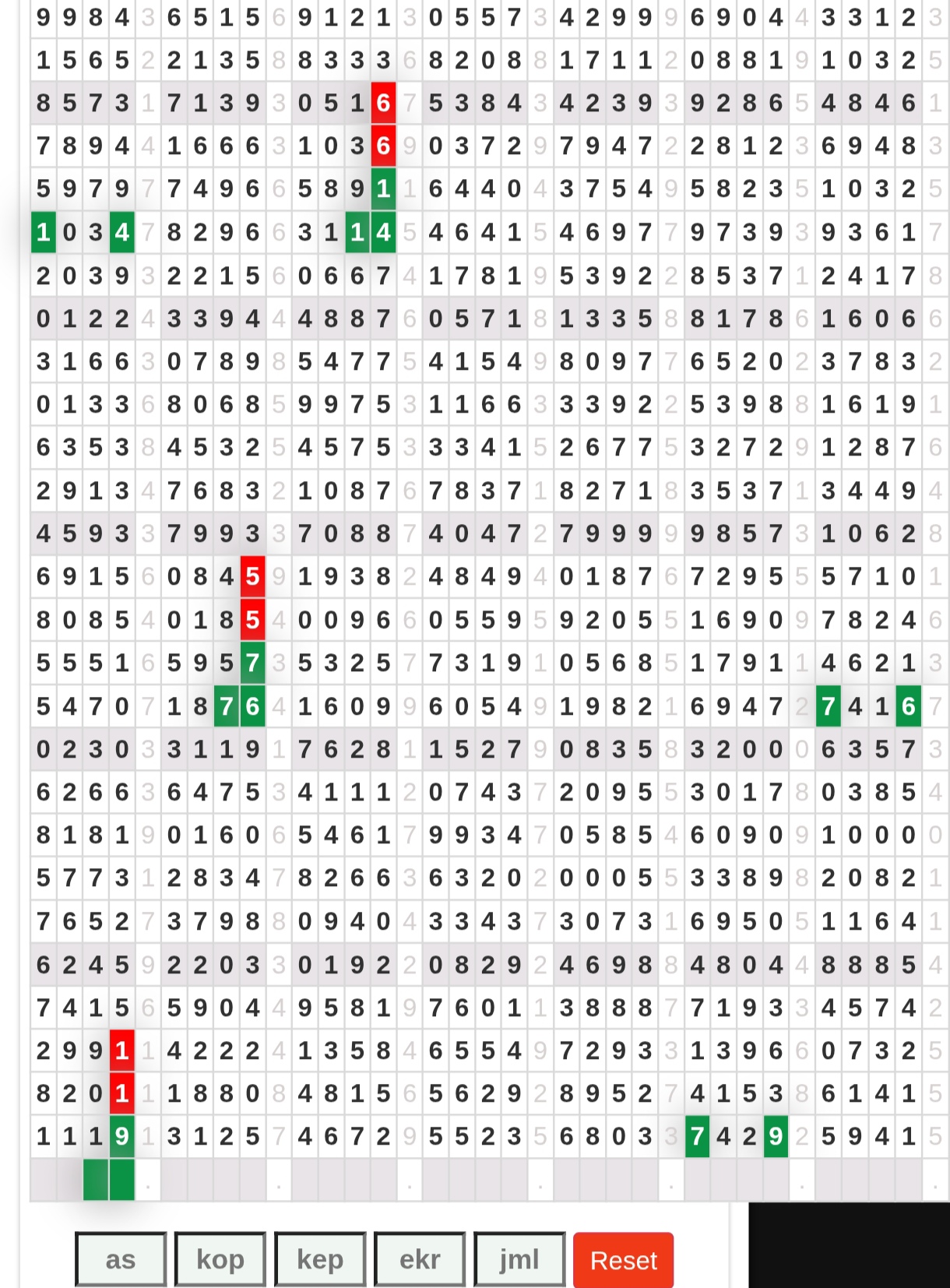 | Rumus Angka Mati berdasarkan kepala harian | 04 06 07 09 10 18 19 20 21 29 30 31 32 42 43 50 51 53 54 61 62 64 71 72 73 74 75 76 82 83 84 85 86 87 93 94 95 96 98 |