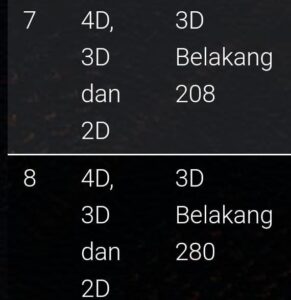 | Rumus Angka Mati berdasarkan kepala harian | 04 05 06 07 09 10 15 17 18 20 21 29 30 31 32 41 42 43 53 54 61 62 64 65 72 73 75 82 83 84 85 86 87 93 94 95 96 97 98 |