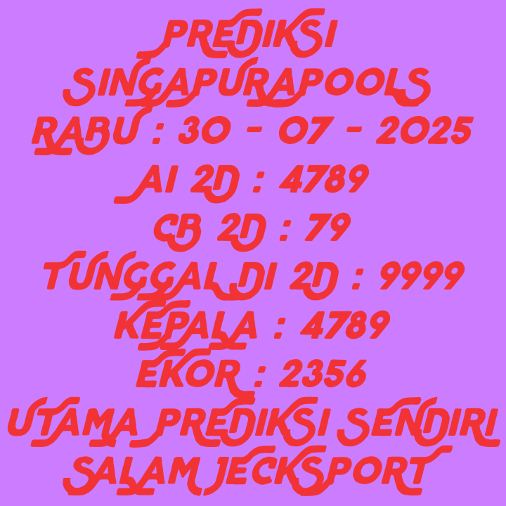 Prediksi Singapore Senin, 03-11-2025 Merupakan Prediksi Otomatis yang menggabungkan Metode Kalender Togel Dengan LN Generator yang akurasi prediksinya sudah kita ketahui bersama. Jadi harap Maklum Jika kadang meleset Prediksi Singapore kita. Jadikan ini sebagai perbandingan saja dan tetap Utamakan karya sendiri