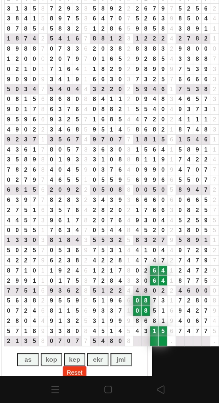 | Rumus Angka Mati berdasarkan kepala harian | 04 05 06 07 09 10 15 17 18 20 21 29 30 31 32 41 42 43 53 54 61 62 64 65 72 73 75 82 83 84 85 86 87 93 94 95 96 97 98 |