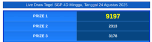 Prediksi Singapore Rabu, 05-11-2025 Merupakan Prediksi Otomatis yang menggabungkan Metode Kalender Togel Dengan LN Generator yang akurasi prediksinya sudah kita ketahui bersama. Jadi harap Maklum Jika kadang meleset Prediksi Singapore kita. Jadikan ini sebagai perbandingan saja dan tetap Utamakan karya sendiri