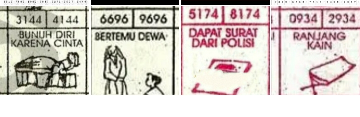 | Rumus Angka Mati berdasarkan kepala harian | 04 05 06 07 09 10 15 17 18 20 21 29 30 31 32 41 42 43 53 54 61 62 64 65 72 73 75 82 83 84 85 86 87 93 94 95 96 97 98 |