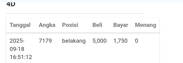| Rumus Angka Mati berdasarkan kepala harian | 05 06 08 10 15 16 17 18 19 20 21 26 27 28 29 30 32 37 38 39 40 41 43 48 52 53 54 63 64 65 74 75 76 86 87 94 95 97 98 |