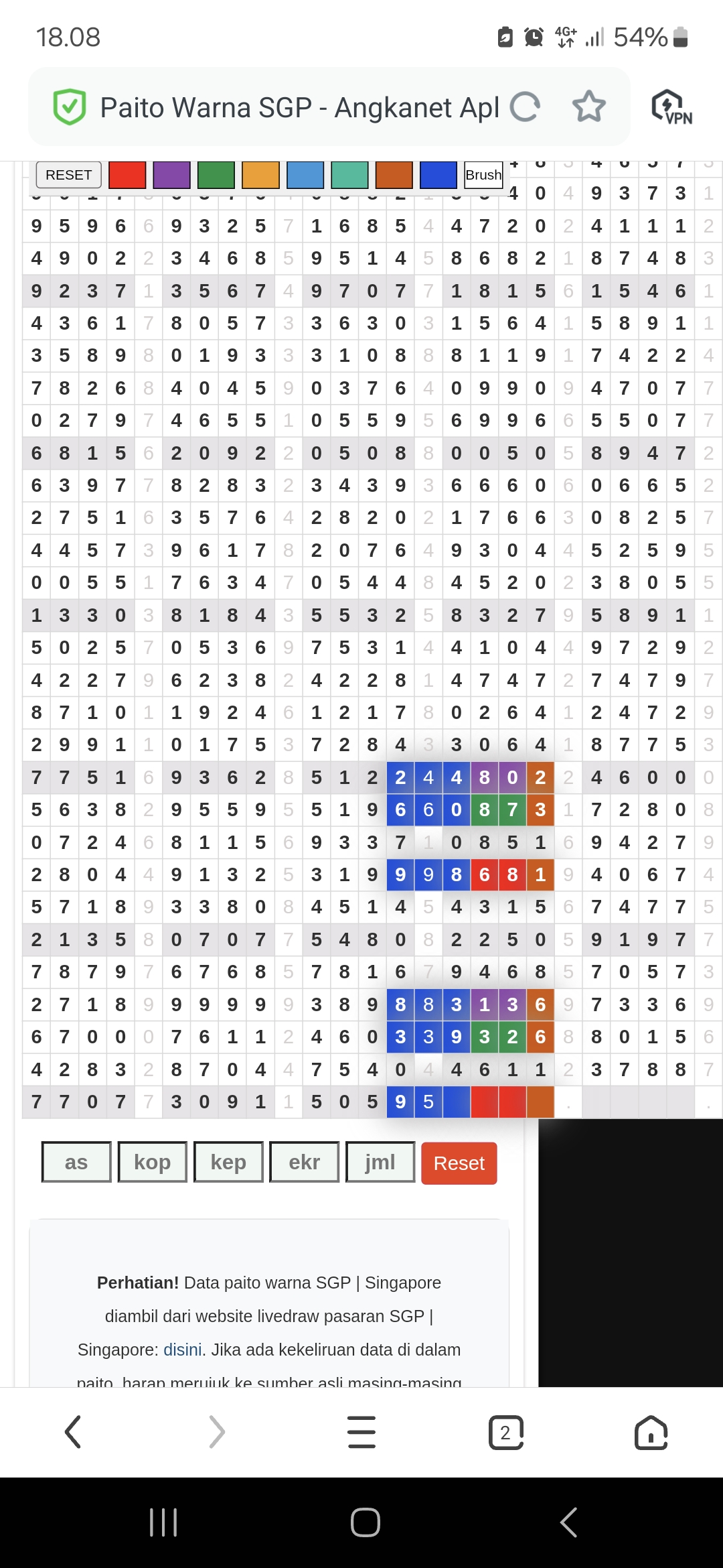 | Rumus Angka Mati berdasarkan kepala harian | 05 06 08 10 15 16 17 18 19 20 21 26 27 28 29 30 32 37 38 39 40 41 43 48 52 53 54 63 64 65 74 75 76 86 87 94 95 97 98 |