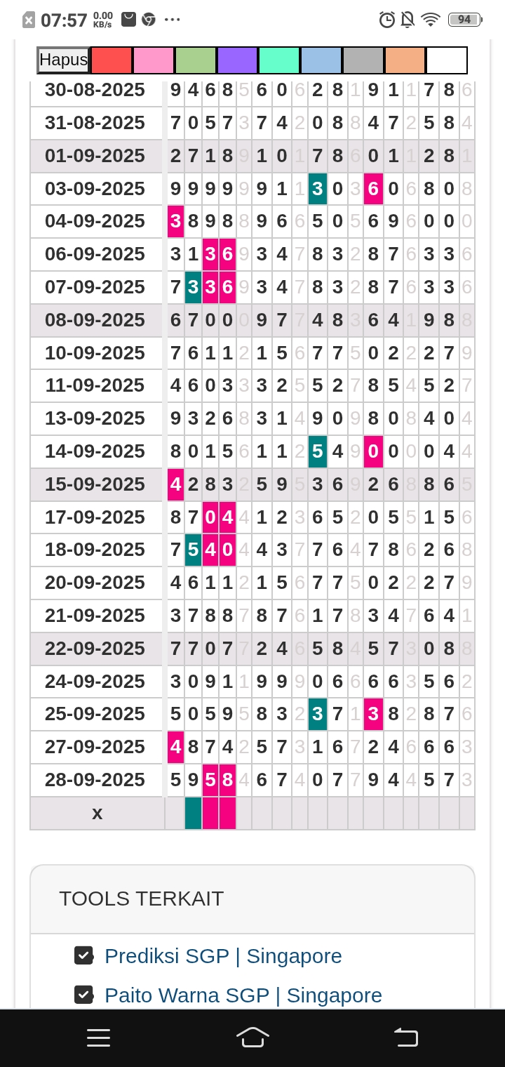 Prediksi Singapore Rabu, 05-11-2025 Merupakan Prediksi Otomatis yang menggabungkan Metode Kalender Togel Dengan LN Generator yang akurasi prediksinya sudah kita ketahui bersama. Jadi harap Maklum Jika kadang meleset Prediksi Singapore kita. Jadikan ini sebagai perbandingan saja dan tetap Utamakan karya sendiri