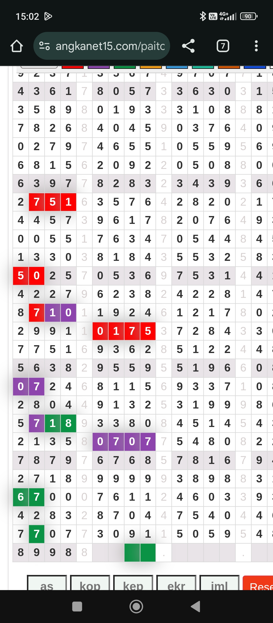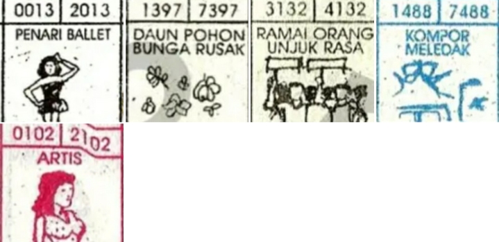| Rumus Angka Mati berdasarkan kepala harian | 05 06 08 10 15 16 17 18 19 20 21 26 27 28 29 30 32 37 38 39 40 41 43 48 52 53 54 63 64 65 74 75 76 86 87 94 95 97 98 |