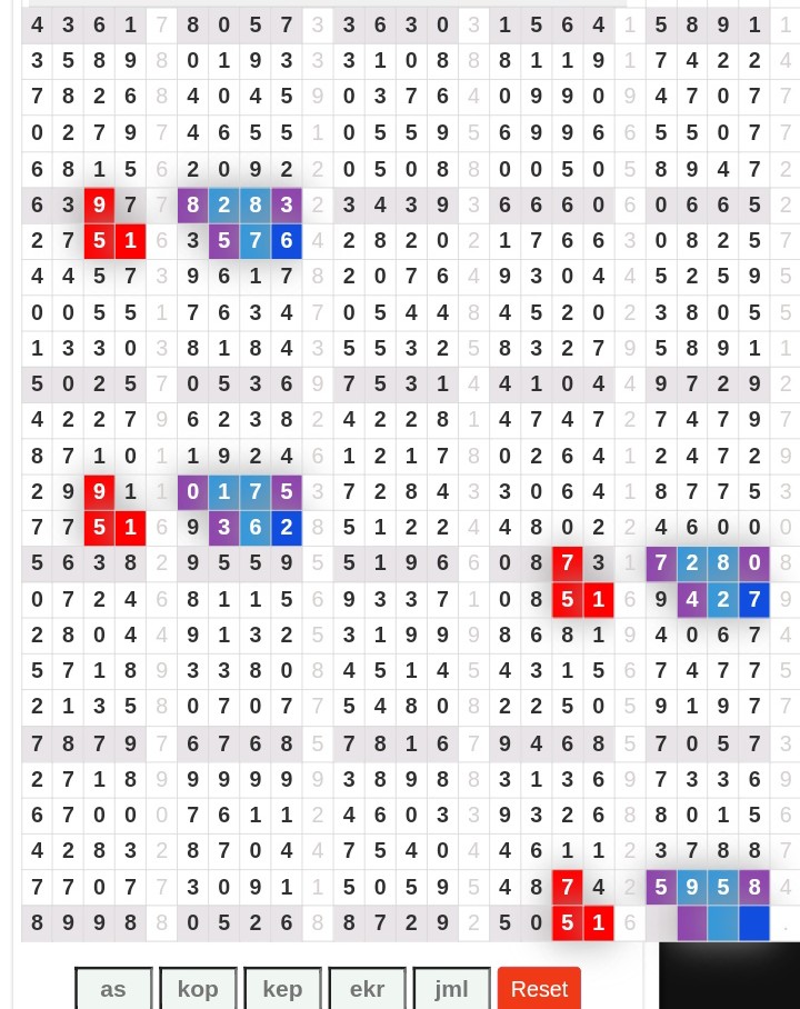 | Rumus Angka Mati berdasarkan kepala harian | 05 06 08 10 15 16 17 18 19 20 21 26 27 28 29 30 32 37 38 39 40 41 43 48 52 53 54 63 64 65 74 75 76 86 87 94 95 97 98 |