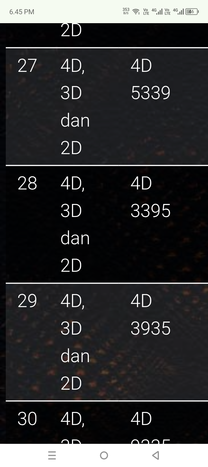 | Rumus Angka Mati berdasarkan kepala harian | 04 05 06 07 09 10 15 17 18 20 21 29 30 31 32 41 42 43 53 54 61 62 64 65 72 73 75 82 83 84 85 86 87 93 94 95 96 97 98 |