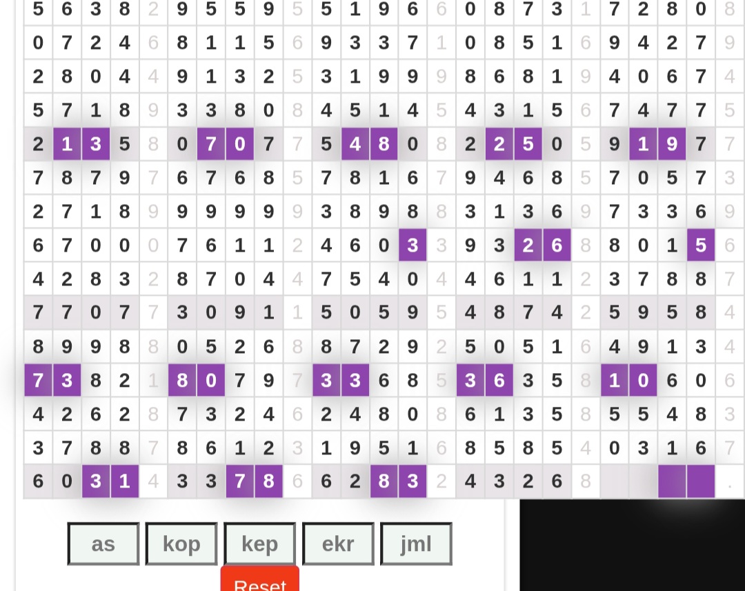 | Rumus Kontrol 1 berdasarkan As harian | 1267890 3456789 1234560 0134789 |
