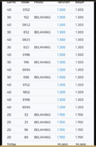 | Rumus Kontrol 1 berdasarkan As harian | 1567890 2345678 1234590 0124589 |