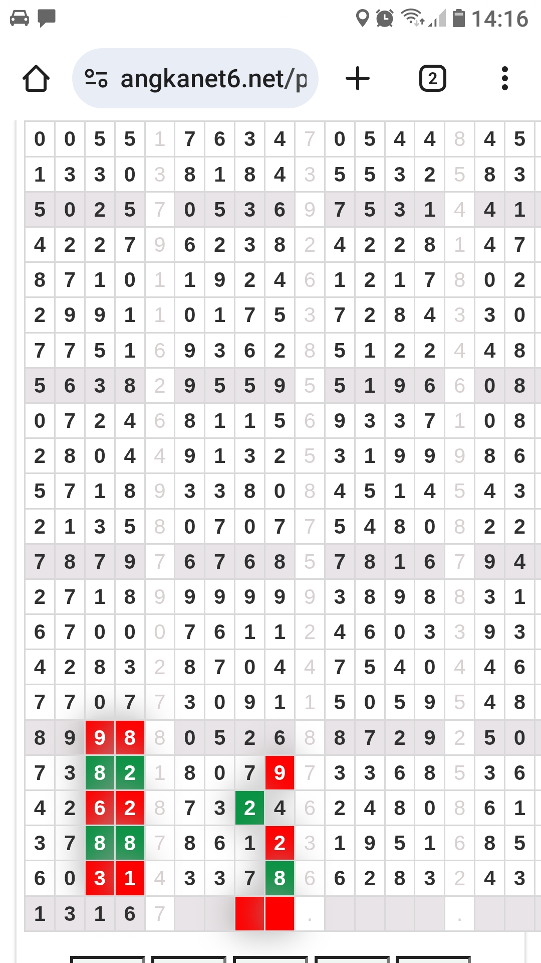 | Rumus Angka Mati berdasarkan kepala harian | 07 08 09 10 18 19 20 21 31 32 38 39 40 42 49 50 51 52 53 54 59 60 61 62 63 64 65 71 72 73 74 76 82 84 85 87 96 97 98 |