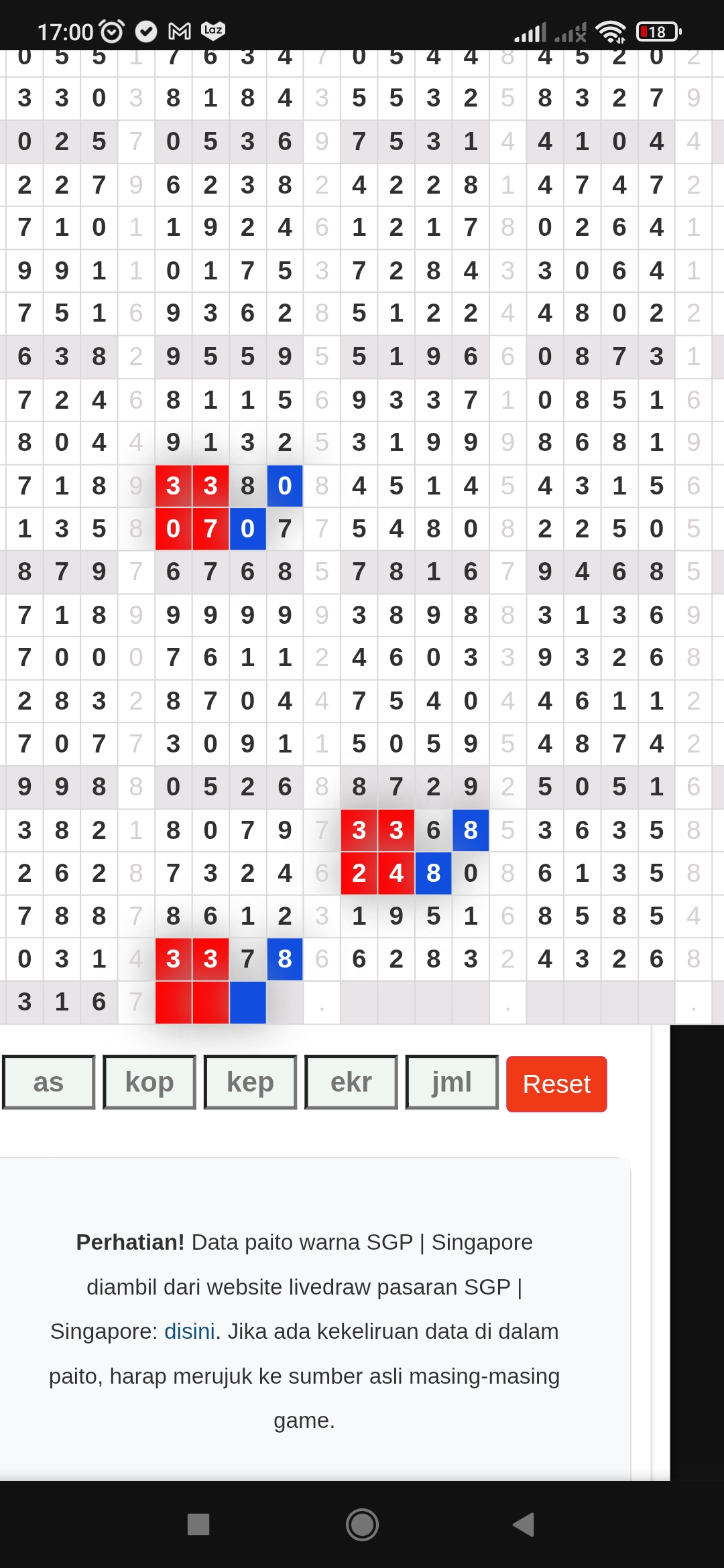 | Rumus Angka Mati berdasarkan kepala harian | 07 08 09 10 18 19 20 21 31 32 38 39 40 42 49 50 51 52 53 54 59 60 61 62 63 64 65 71 72 73 74 76 82 84 85 87 96 97 98 |