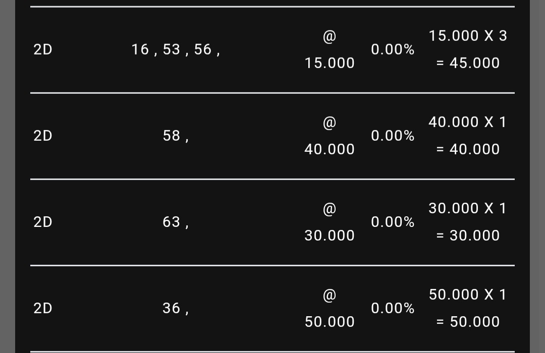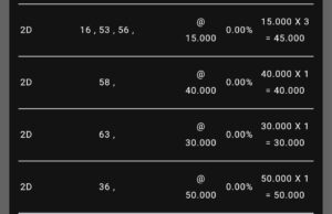 | Rumus Angka Mati berdasarkan kepala harian | 04 06 07 09 10 18 19 20 21 29 30 31 32 42 43 50 51 53 54 61 62 64 71 72 73 74 75 76 82 83 84 85 86 87 93 94 95 96 98 |