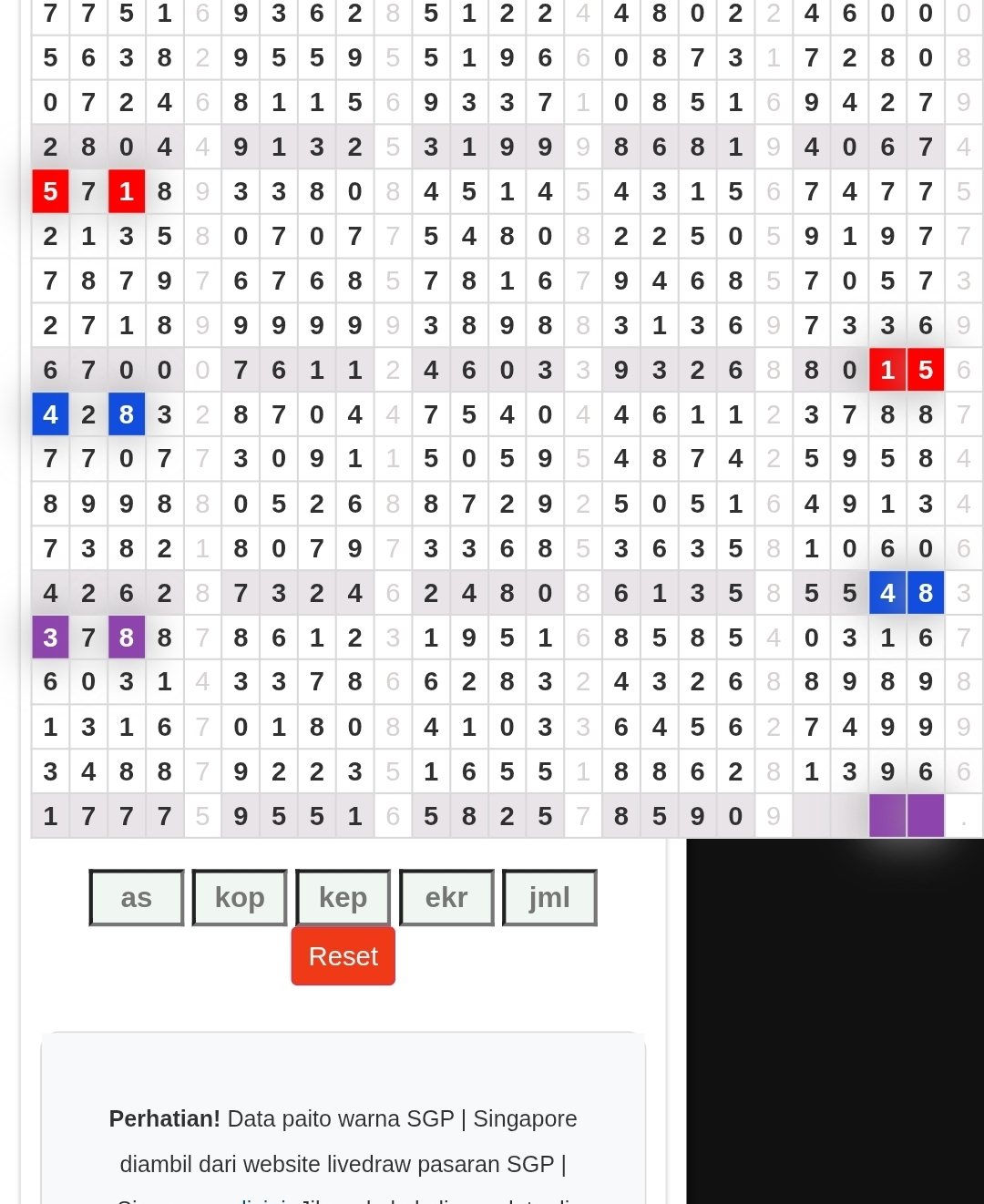 Prediksi Singapore Minggu, 23-11-2025 Merupakan Prediksi Otomatis yang menggabungkan Metode Kalender Togel Dengan LN Generator yang akurasi prediksinya sudah kita ketahui bersama. Jadi harap Maklum Jika kadang meleset Prediksi Singapore kita. Jadikan ini sebagai perbandingan saja dan tetap Utamakan karya sendiri