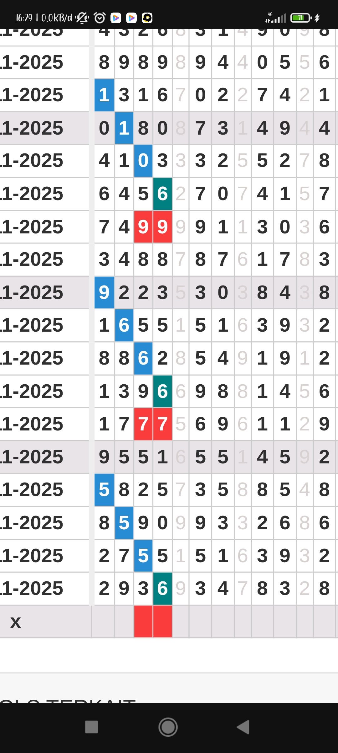 | Rumus Angka Mati berdasarkan kepala harian | 05 06 08 10 15 16 17 18 19 20 21 26 27 28 29 30 32 37 38 39 40 41 43 48 52 53 54 63 64 65 74 75 76 86 87 94 95 97 98 |