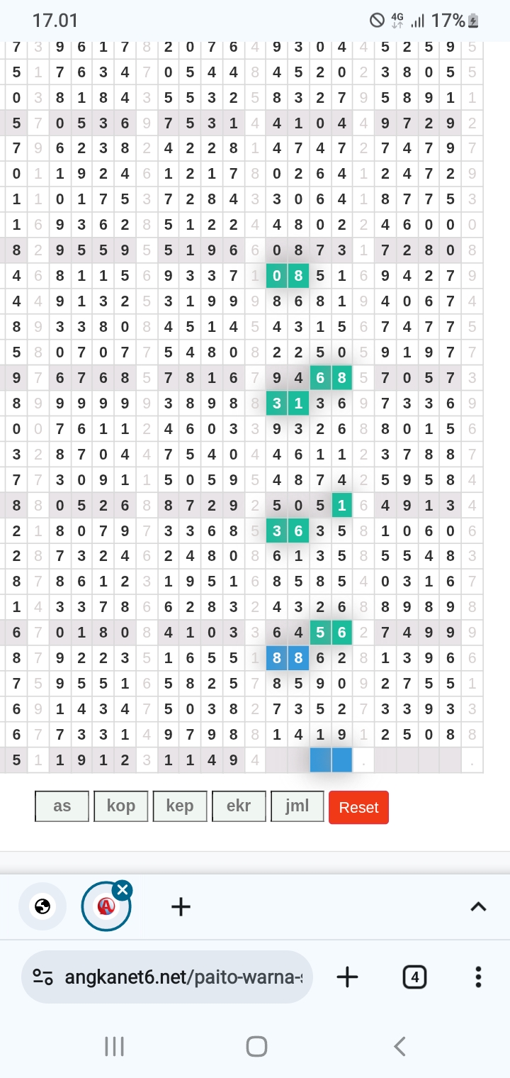 | Rumus Kontrol 4 berdasarkan kepala harian | 2345890 1236789 |