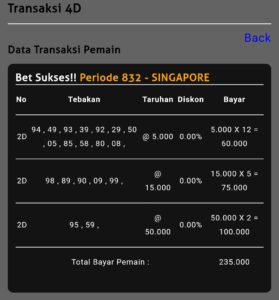 Prediksi Singapore Senin, 10-11-2025 Merupakan Prediksi Otomatis yang menggabungkan Metode Kalender Togel Dengan LN Generator yang akurasi prediksinya sudah kita ketahui bersama. Jadi harap Maklum Jika kadang meleset Prediksi Singapore kita. Jadikan ini sebagai perbandingan saja dan tetap Utamakan karya sendiri