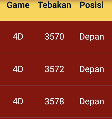 Prediksi Ini Berubah secara otomatis sesuai hari dan result pasaran masing-masing. Untuk melihat prediksi sebelumnya klik tombol nomor hitam diatas