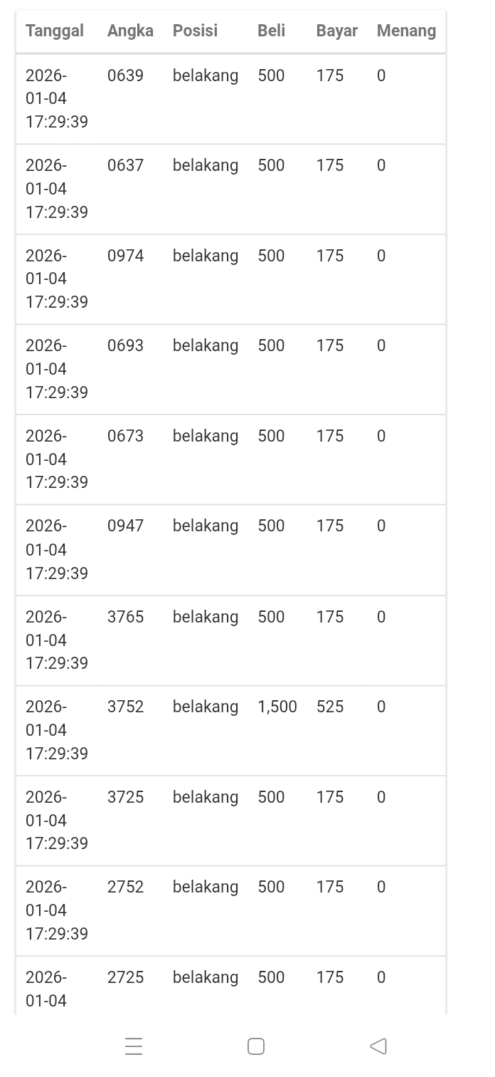 | Rumus Kontrol 2 berdasarkan Ekor harian | 1354802 2345689 9357048 |