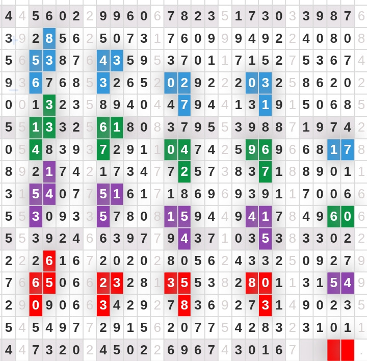 | Rumus Angka Mati berdasarkan kepala harian | 05 06 08 09 16 17 19 20 21 26 27 28 29 30 31 32 37 38 39 40 41 43 48 49 51 52 54 59 63 64 65 74 75 76 85 86 87 97 98 |