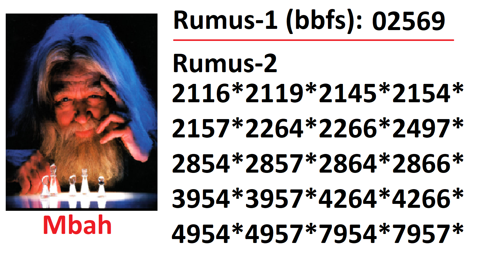 | Rumus Angka Mati berdasarkan kepala harian | 04 06 07 09 10 18 19 20 21 29 30 31 32 42 43 50 51 53 54 61 62 64 71 72 73 74 75 76 82 83 84 85 86 87 93 94 95 96 98 |