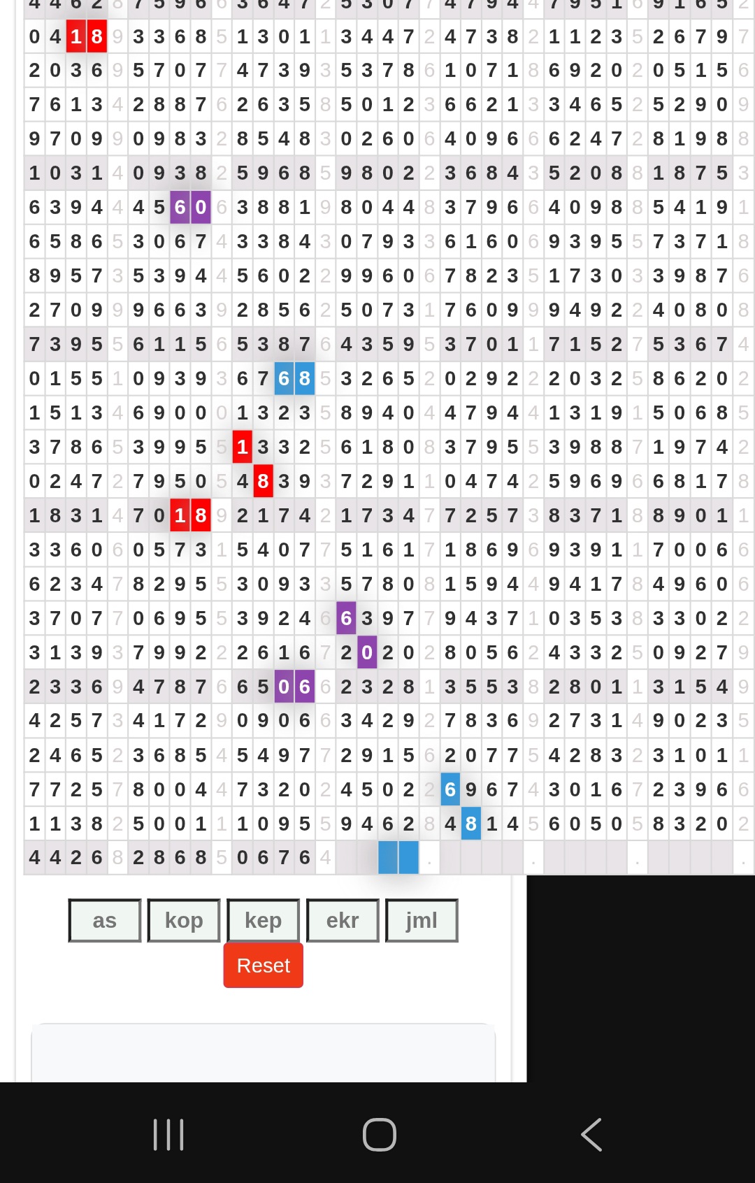 | Rumus Angka Mati berdasarkan kepala harian | 04 06 07 09 10 18 19 20 21 29 30 31 32 42 43 50 51 53 54 61 62 64 71 72 73 74 75 76 82 83 84 85 86 87 93 94 95 96 98 |