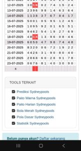 Prediksi Sydneypools Jumat, 07-11-2025 Merupakan Prediksi Otomatis yang menggabungkan Metode Kalender Togel Dengan LN Generator yang akurasi prediksinya sudah kita ketahui bersama. Jadi harap Maklum Jika kadang meleset Prediksi Sydneypools kita. Jadikan ini sebagai perbandingan saja dan tetap Utamakan karya sendiri