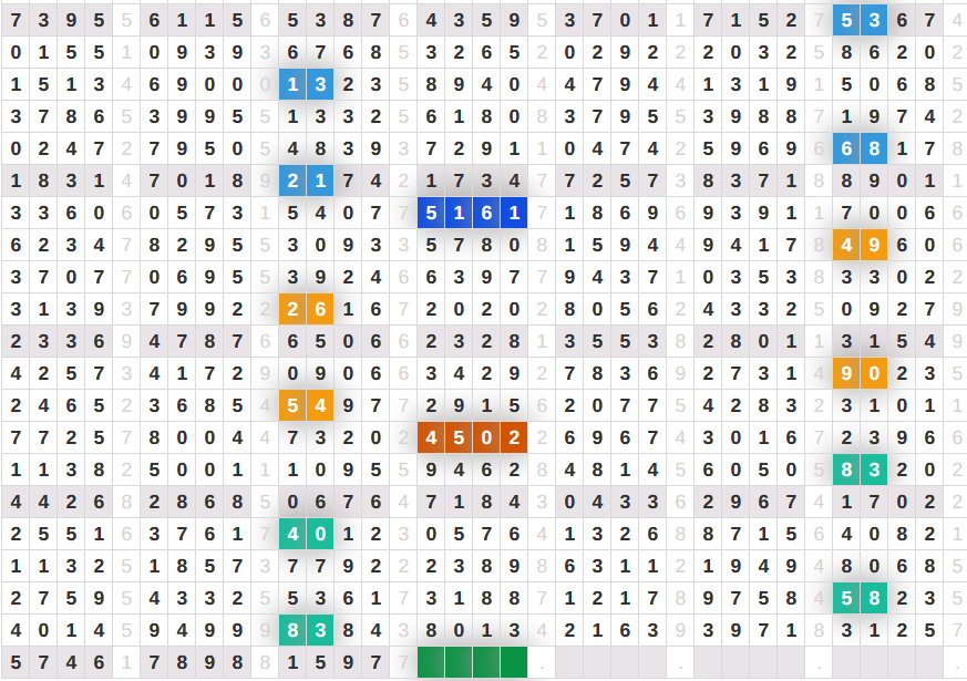 | Rumus Angka Mati berdasarkan kepala harian | 04 05 06 07 08 09 10 15 16 17 18 19 21 26 27 28 29 30 32 37 39 41 42 43 52 53 54 63 64 65 75 76 83 84 86 87 94 95 97 |