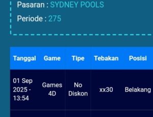 Prediksi Sydneypools Jumat, 17-10-2025 Merupakan Prediksi Otomatis yang menggabungkan Metode Kalender Togel Dengan LN Generator yang akurasi prediksinya sudah kita ketahui bersama. Jadi harap Maklum Jika kadang meleset Prediksi Sydneypools kita. Jadikan ini sebagai perbandingan saja dan tetap Utamakan karya sendiri