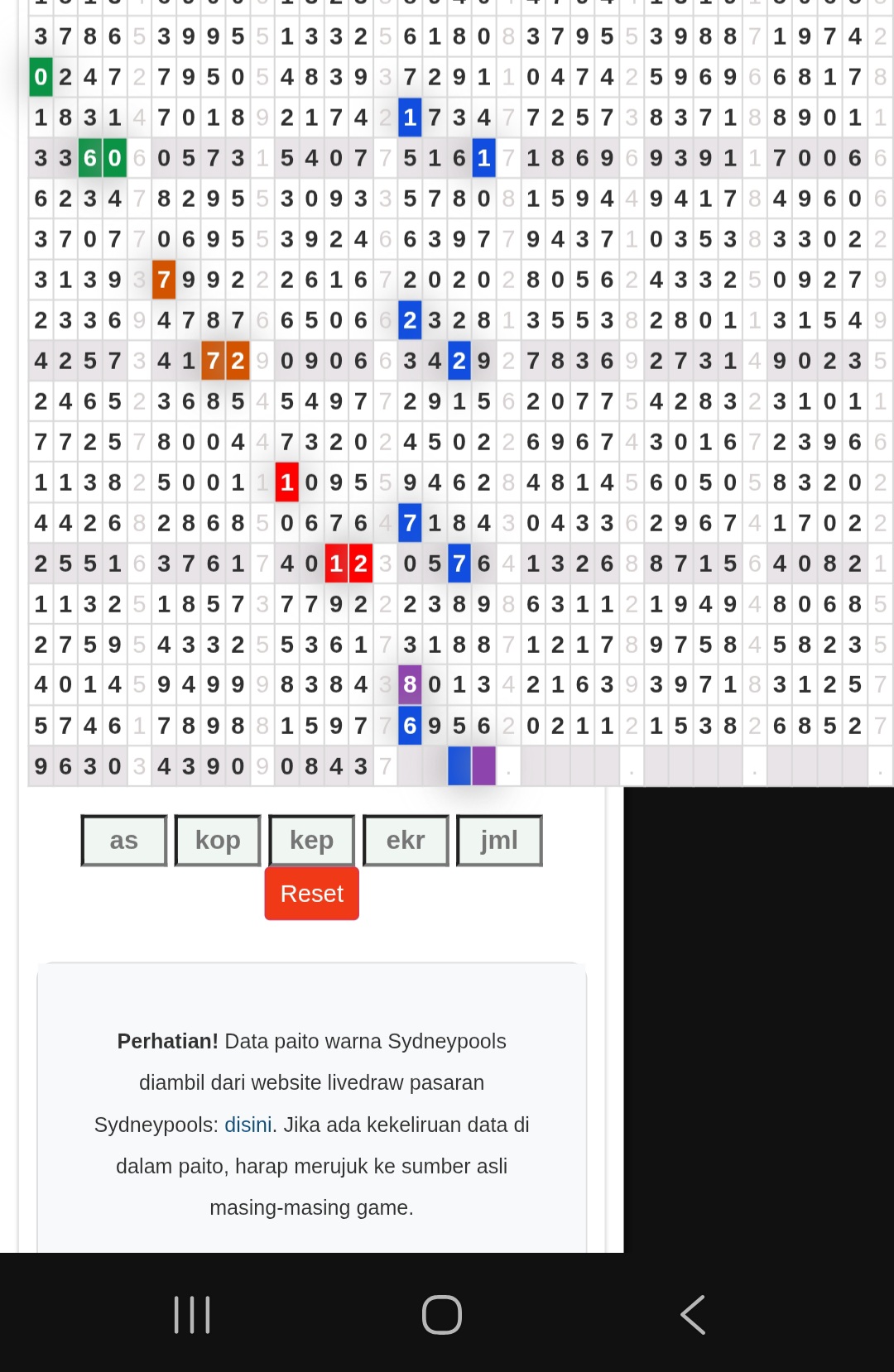 Prediksi Sydneypools Rabu, 08-10-2025 Merupakan Prediksi Otomatis yang menggabungkan Metode Kalender Togel Dengan LN Generator yang akurasi prediksinya sudah kita ketahui bersama. Jadi harap Maklum Jika kadang meleset Prediksi Sydneypools kita. Jadikan ini sebagai perbandingan saja dan tetap Utamakan karya sendiri