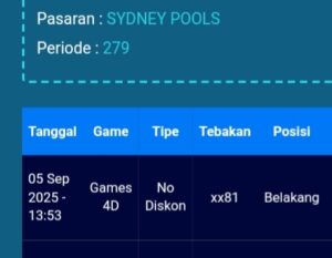Prediksi Sydneypools Kamis, 06-11-2025 Merupakan Prediksi Otomatis yang menggabungkan Metode Kalender Togel Dengan LN Generator yang akurasi prediksinya sudah kita ketahui bersama. Jadi harap Maklum Jika kadang meleset Prediksi Sydneypools kita. Jadikan ini sebagai perbandingan saja dan tetap Utamakan karya sendiri