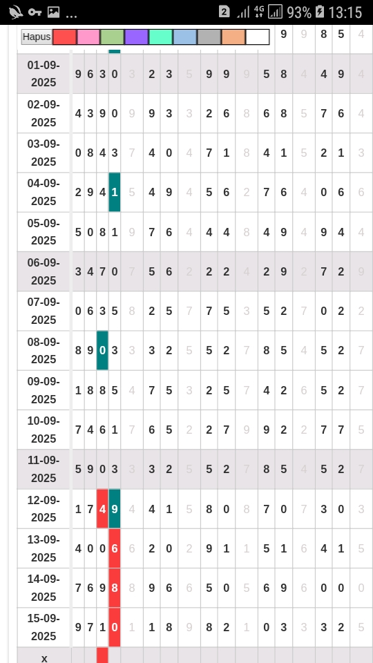 | Rumus Angka Mati berdasarkan kepala harian | 04 05 06 07 09 10 15 17 18 20 21 29 30 31 32 41 42 43 53 54 61 62 64 65 72 73 75 82 83 84 85 86 87 93 94 95 96 97 98 |