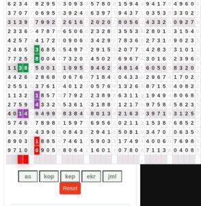 | Rumus Angka Mati berdasarkan kepala harian | 04 05 06 07 08 09 10 15 16 17 18 19 21 26 27 28 29 30 32 37 39 41 42 43 52 53 54 63 64 65 75 76 83 84 86 87 94 95 97 |