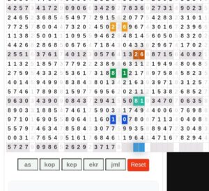 | Rumus Angka Mati berdasarkan kepala harian | 05 06 08 10 15 16 17 18 19 20 21 26 27 28 29 30 32 37 38 39 40 41 43 48 52 53 54 63 64 65 74 75 76 86 87 94 95 97 98 |