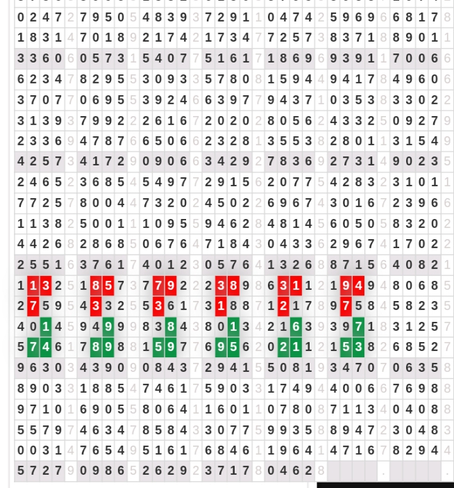 | Rumus Angka Mati berdasarkan kepala harian | 04 05 06 07 09 10 15 17 18 20 21 29 30 31 32 41 42 43 53 54 61 62 64 65 72 73 75 82 83 84 85 86 87 93 94 95 96 97 98 |
