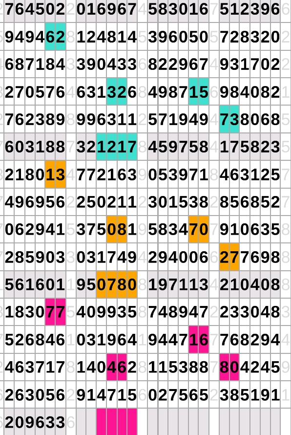 | Rumus Angka Mati berdasarkan kepala harian | 04 05 06 07 08 09 10 15 16 17 18 19 21 26 27 28 29 30 32 37 39 41 42 43 52 53 54 63 64 65 75 76 83 84 86 87 94 95 97 |