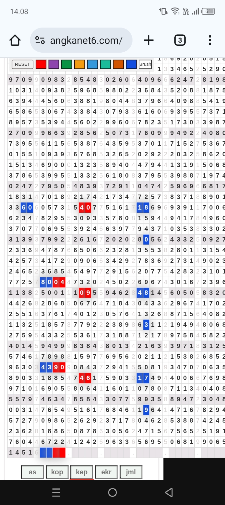 | Rumus Angka Mati berdasarkan kepala harian | 04 05 06 07 08 09 10 15 16 17 18 19 21 26 27 28 29 30 32 37 39 41 42 43 52 53 54 63 64 65 75 76 83 84 86 87 94 95 97 |