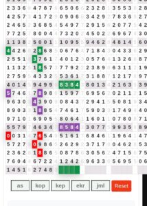 | Rumus Angka Mati berdasarkan kepala harian | 04 05 06 07 08 09 10 15 16 17 18 19 21 26 27 28 29 30 32 37 39 41 42 43 52 53 54 63 64 65 75 76 83 84 86 87 94 95 97 |