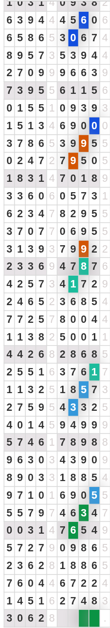 | Rumus Angka Mati berdasarkan kepala harian | 04 05 06 07 08 09 10 15 16 17 18 19 21 26 27 28 29 30 32 37 39 41 42 43 52 53 54 63 64 65 75 76 83 84 86 87 94 95 97 |