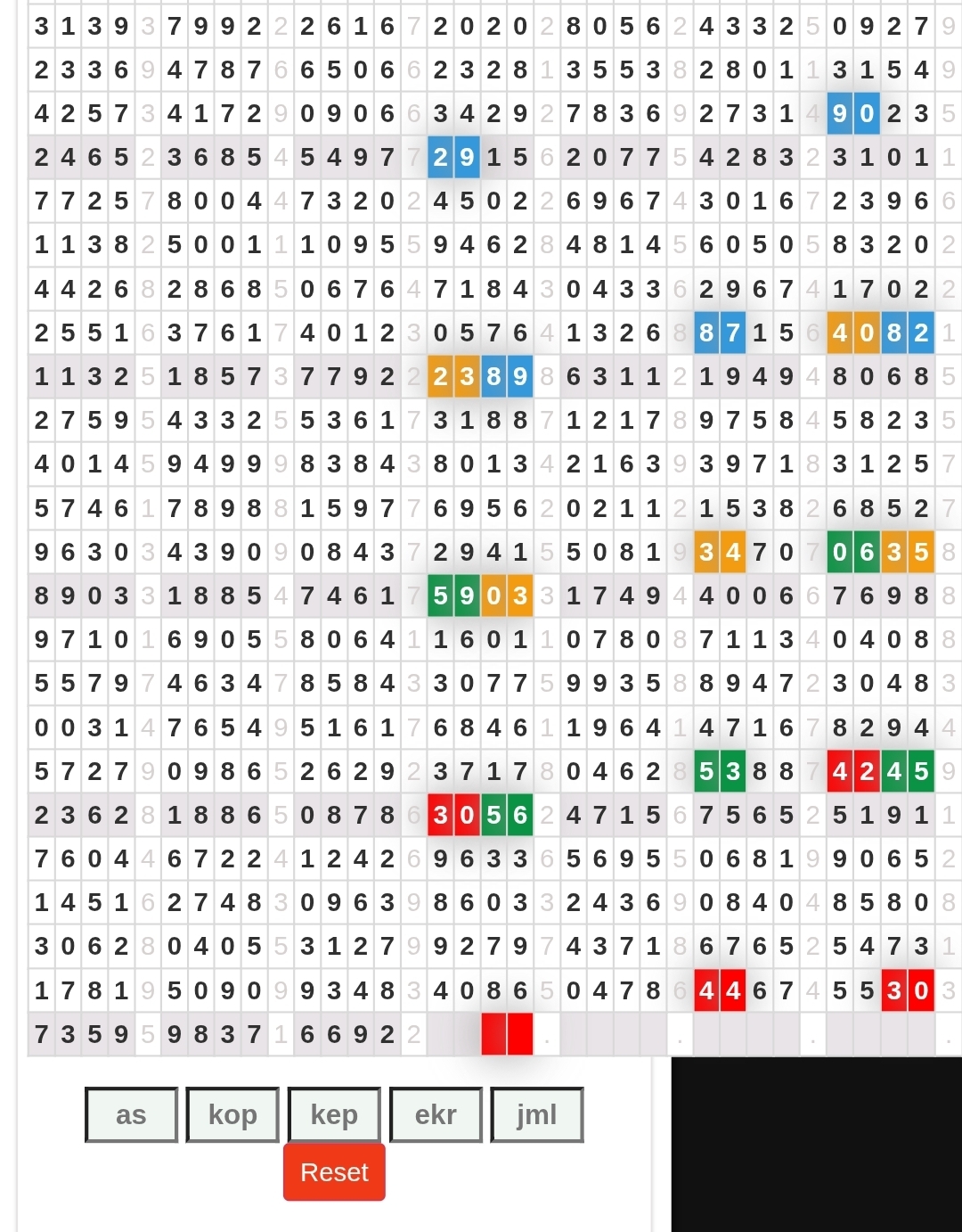 | Rumus Angka Mati berdasarkan kepala harian | 04 05 06 07 08 09 10 15 16 17 18 21 26 28 29 30 31 32 41 42 43 52 53 54 64 65 72 73 75 76 83 84 86 93 94 95 96 97 98 |