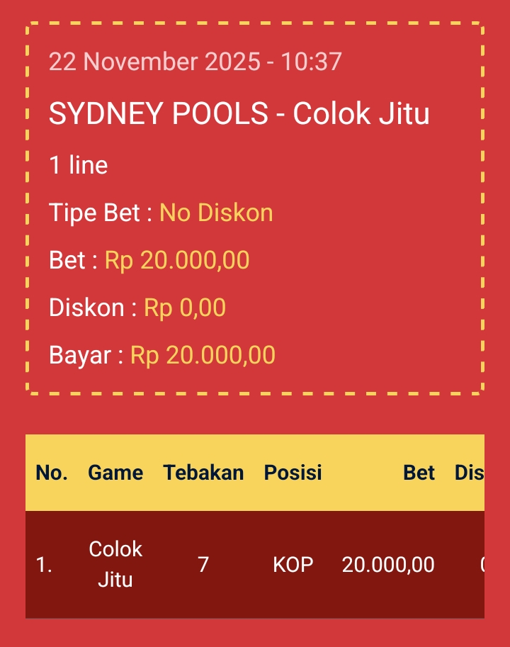 Selamat Bergabung kembali bersama angkanet dalam room Prediksi Sydneypools. Untuk kenyamanan dalam berprediksi, kami melarang adanya posting nomor WA, Web atau FB. Angkanet juga tidak pernah menjual prediksi, software, atau aplikasi togel lainnya. Berprediksilah secara damai dan elegan. Terima kasih telah menjadi pengunjung setia angkanet