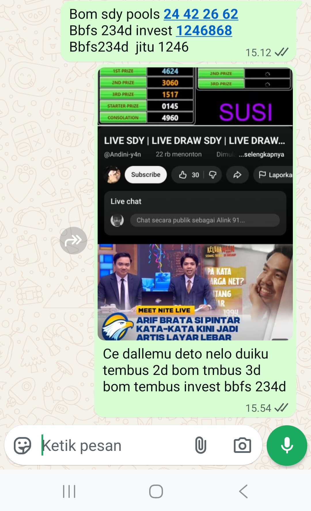 Selamat Bergabung kembali bersama angkanet dalam room Prediksi Sydneypools. Untuk kenyamanan dalam berprediksi, kami melarang adanya posting nomor WA, Web atau FB. Angkanet juga tidak pernah menjual prediksi, software, atau aplikasi togel lainnya. Berprediksilah secara damai dan elegan. Terima kasih telah menjadi pengunjung setia angkanet