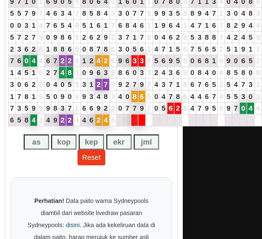Prediksi Sydneypools Rabu, 05-11-2025 Merupakan Prediksi Otomatis yang menggabungkan Metode Kalender Togel Dengan LN Generator yang akurasi prediksinya sudah kita ketahui bersama. Jadi harap Maklum Jika kadang meleset Prediksi Sydneypools kita. Jadikan ini sebagai perbandingan saja dan tetap Utamakan karya sendiri